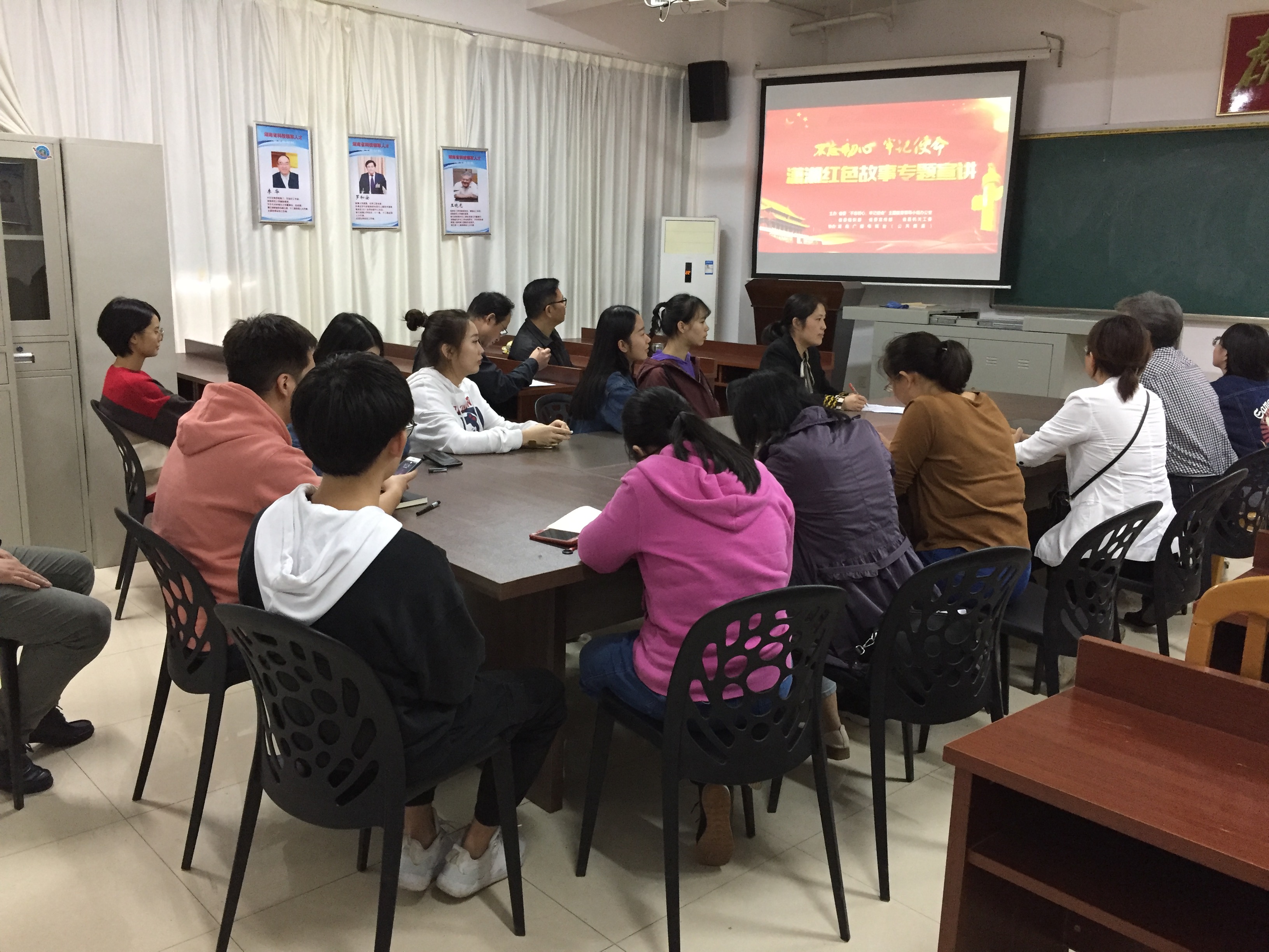 10月12日,伟德国际1949党委组织学院党委中心组成员、行政干部和各教职工和学生党支部书记在学院222会议室观看《潇湘红色故事专题宣讲片》。