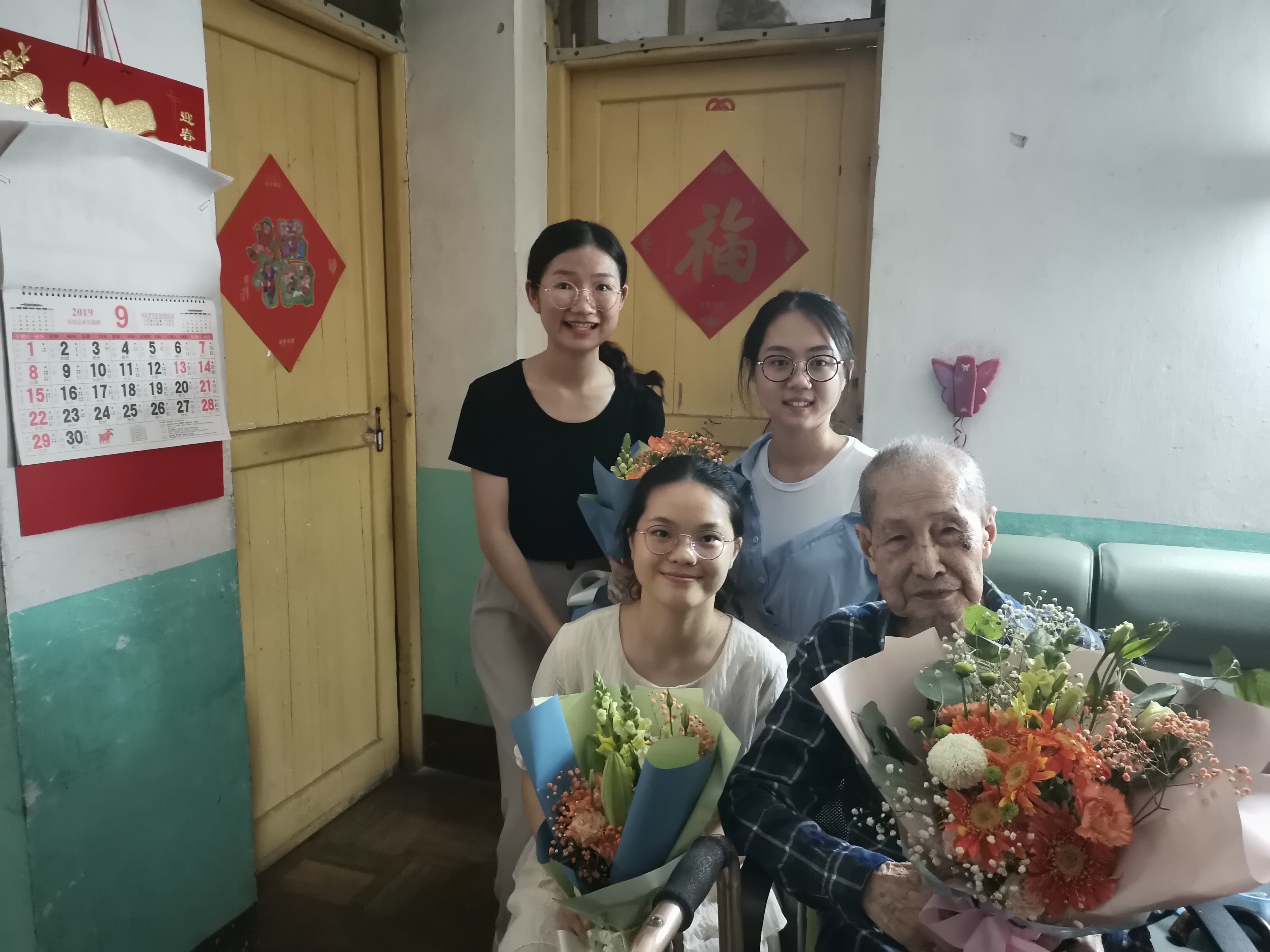 另外学生党员代表看望了百岁老教师林立炟,林老师与学生党员代表们亲切交谈,学生党员代表向林老师献上节日的问候与祝福 。
