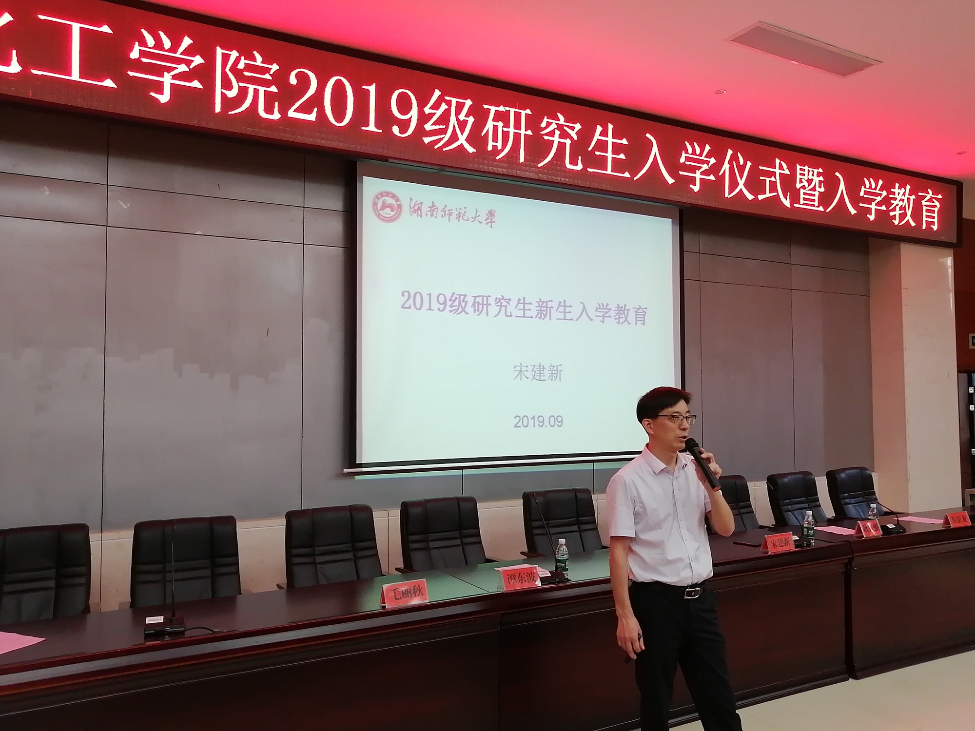 入学仪式结束后,副院长宋建新教授对研究生进行了入学教育。宋院长表示,研究生首先要做到学会做人,要有责任有担当,做事情要有始有终。随后他围绕学校和伟德概况,学院师资队伍建设、学院管理、研究生培养、研究生管理等方面进行入学教育。要求新生应学会自主学习、掌握时间,为未来的科研作出贡献。