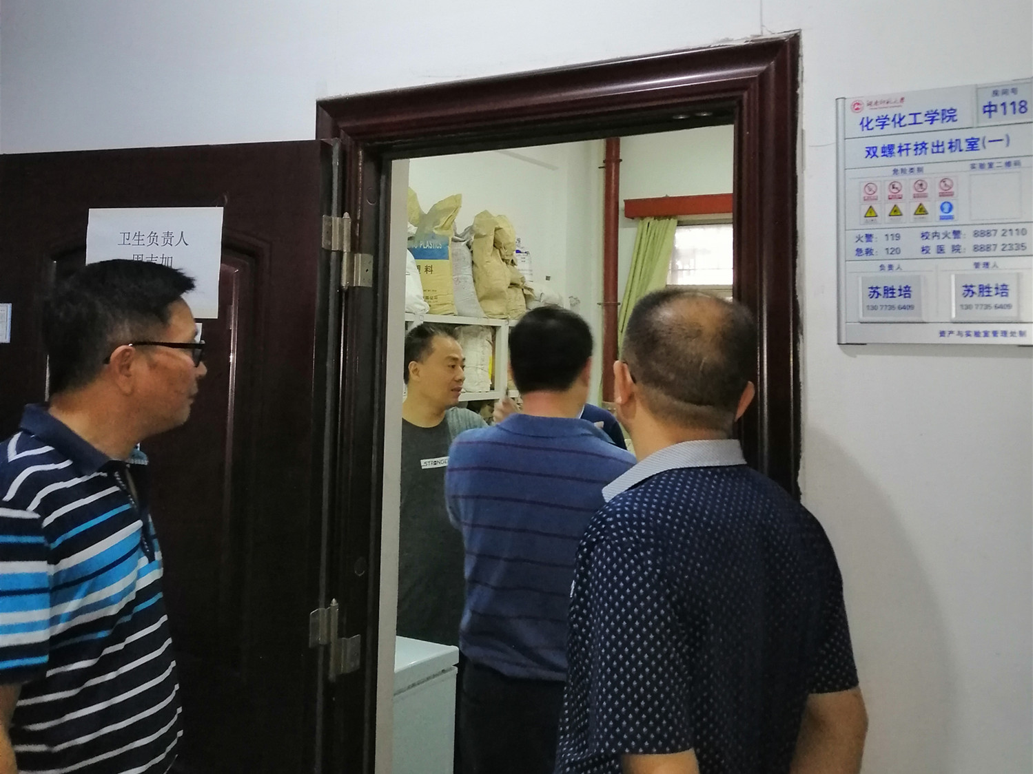 检查组抽检了我院南栋、中栋、北栋的科研实验室、教学实验室及危化品库房,重点检查项目为危化品的购买、存储、领用等管理工作。