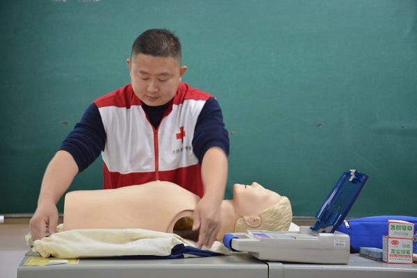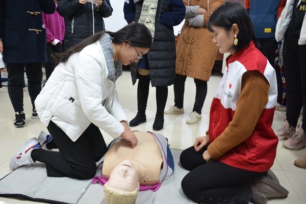 理论学习后,同学们分两组分别到210、324教室进行实际操作,红十字会相关老师针对同学们的具体操作进行纠正与指导。