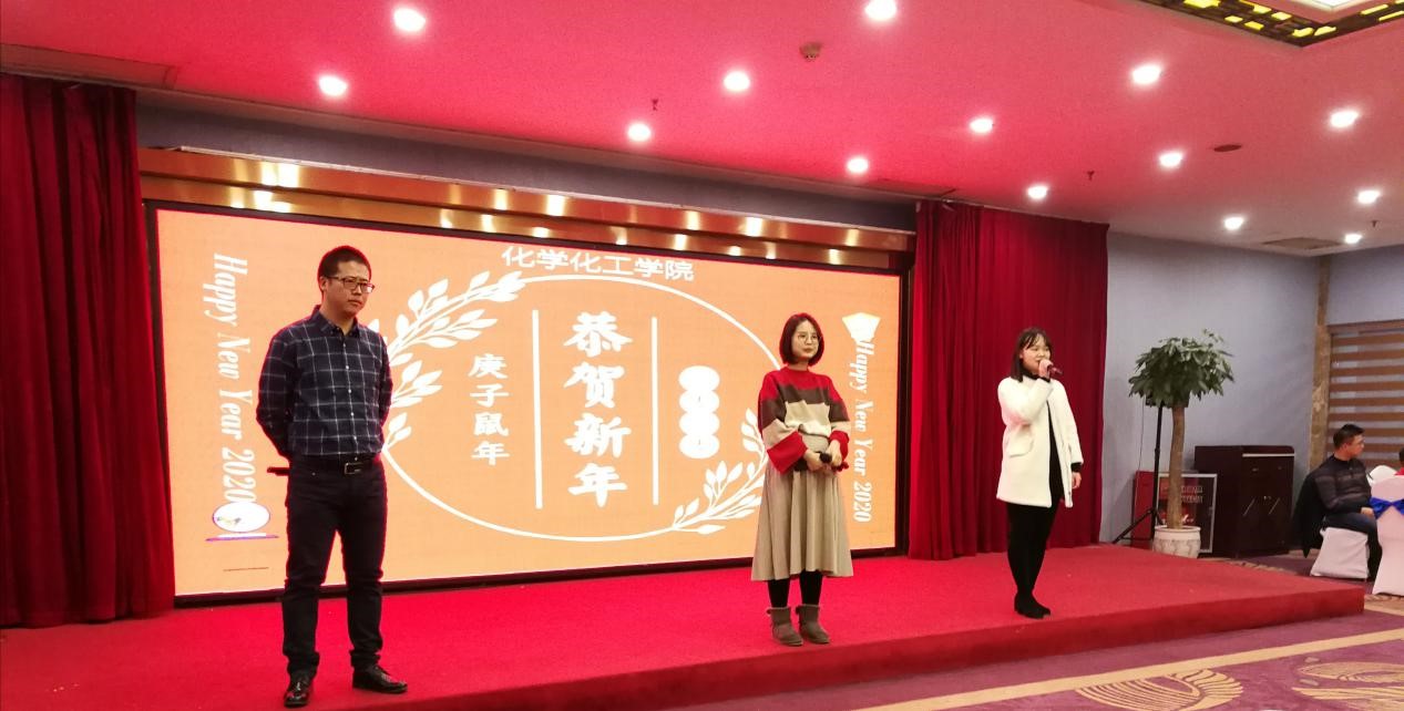 新加入化工院大家庭的三位老师:马元鸿、王彦丹、李阳芷向大家介绍了自己,同时献上一曲《夜空中最亮的星》。李志强老师为大家带来一曲《兄弟抱一下》,希望化工院的各位老师像歌词当中写的一样,像亲人兄弟一样互帮互助,努力加油。