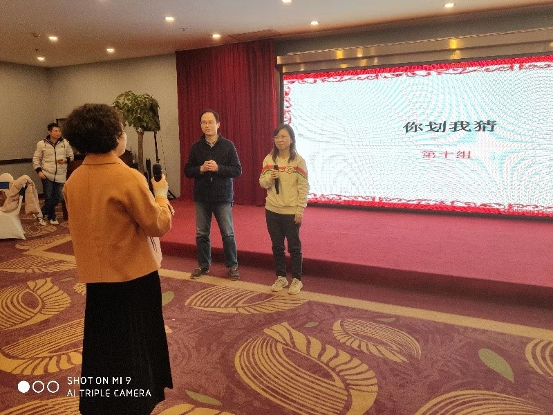 游戏环节以教研室和行政后勤为单位进行“你比划我来猜”游戏,各小组每组推选3位参赛者,1人描述词语,2人猜出所描述的词语,限时1分钟。老师们面对大屏幕上出现的词语有时候着急得抓耳挠腮,有时候非常默契,宛如一人,答题飞快。一些老师诙谐的动作和搞笑的言语逗得在场的老师捧腹大笑。游戏结束后的抽奖环节将活动气氛推向高潮。活动在全体老师的互道祝贺声当中结束。