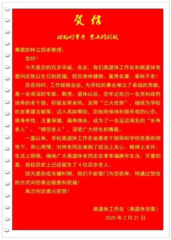 伟德国际victor1946离退休工作处贺信