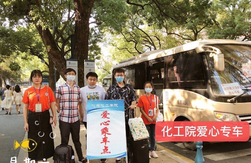院长杨荣华来到学院报到点,与学生开展座谈交流,关爱学生为他们答疑解惑;副院长谭东波、党委副书记罗艳加入到志愿团队中,爱心护送返校学子;校医院孟文华副院长全程支持,指导学院返校防疫工作;学院行政教辅人员全员到岗,分配到消杀、测温、核查信息等不同岗位上;学院拨付专款租用爱心专车,接送学生往返宿舍运送行李;本科生班导师和返校学生成立志愿团队,“全方位”为同学服务。