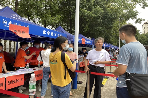 9月12日,周俊武副校长到我院报到点视察工作,并关心家庭困难学生报到情况。化工院党委副书记罗艳到场指导工作,慰问志愿者。谭东波副院长、教育部重点实验室副主任宋春红老师到场关怀新生,向新生和家长介绍了学校的基本情况、湖南的风土人情等。20级新生辅导员欧阳唯一老师始终坚持在报到场地,实时记录新生报到情况,及时与新生沟通解惑。