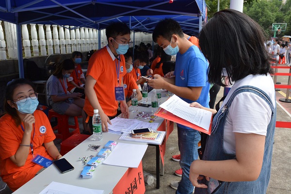 (通讯员 谭翌 马娟 )9月11日下午、12日全天,伟德国际1949在江边篮球场开展2020级新生报到工作。