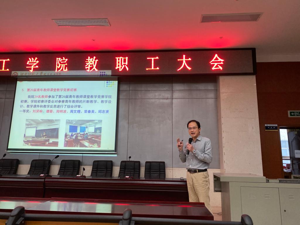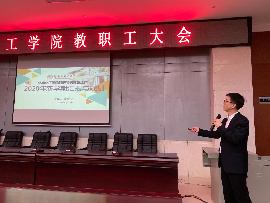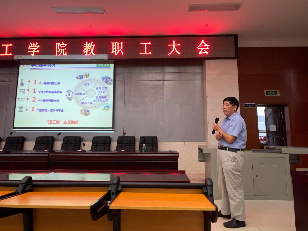 副院长谭东波向大家传达了学校新学期工作会议的主要精神,并对过去一个学期的学院部分工作及安全、防疫工作进行汇报。他表示,今年以来受疫情影响,学院工作接受了较大考验,但全体师生,尤其是行政教辅人员听指挥,敢担当,积极主动,齐心协力打好疫情防控战,确保了顺利开学。他强调,疫情防控进入常态化,需持续保持防范意识,不大意、不松劲。他指出,安全、环保工作无小事,请各位老师高度重视,尤其是对危化品、危废物和管制类药品的管理必须规范、安全。