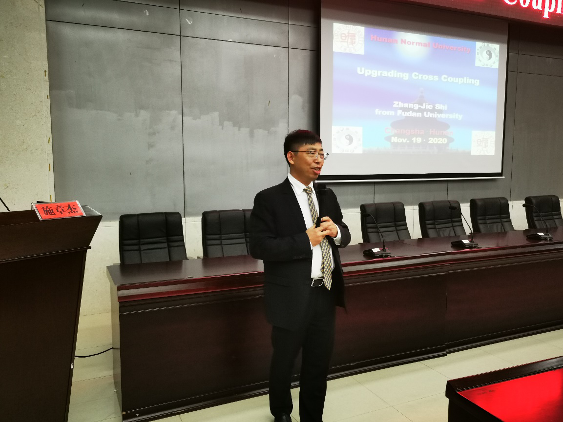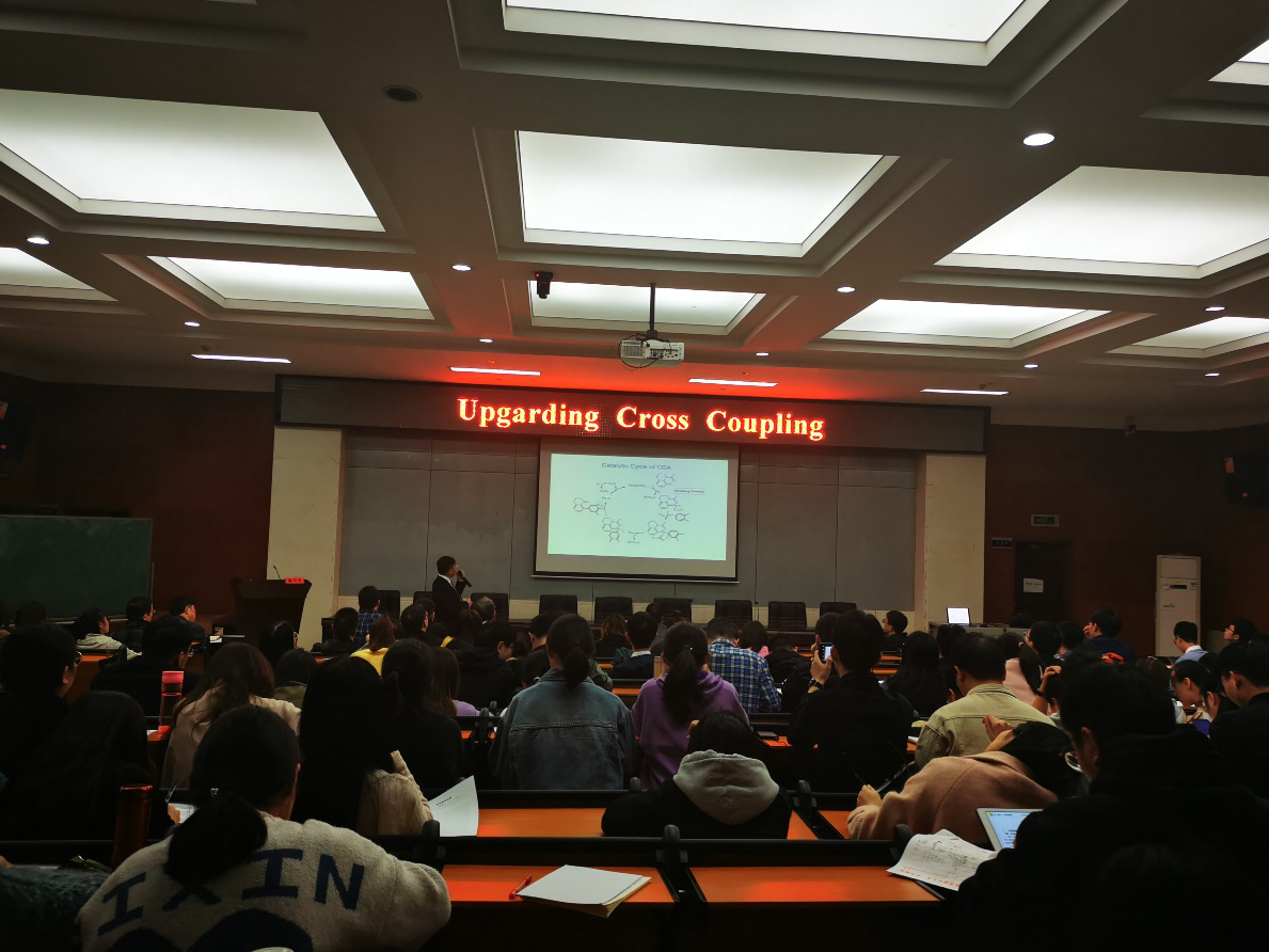 施章杰教授从交叉偶联反应的重要性谈起,讲述了该课题组在惰性C-H键活化领域的研究,从导向的邻位碳氢键卤化反应到芳基化反应,从有机金属试剂到普通芳环参与的氧化偶联,从贵过渡金属到普通金属甚至无过渡金属参与的C-H键转化反应。