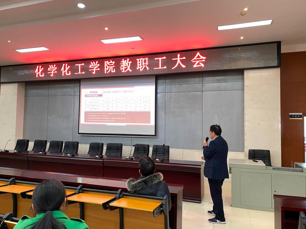 1月14日下午,学院召开了教职工大会,院长杨荣华做工作报告,党委书记于风江主持会议。