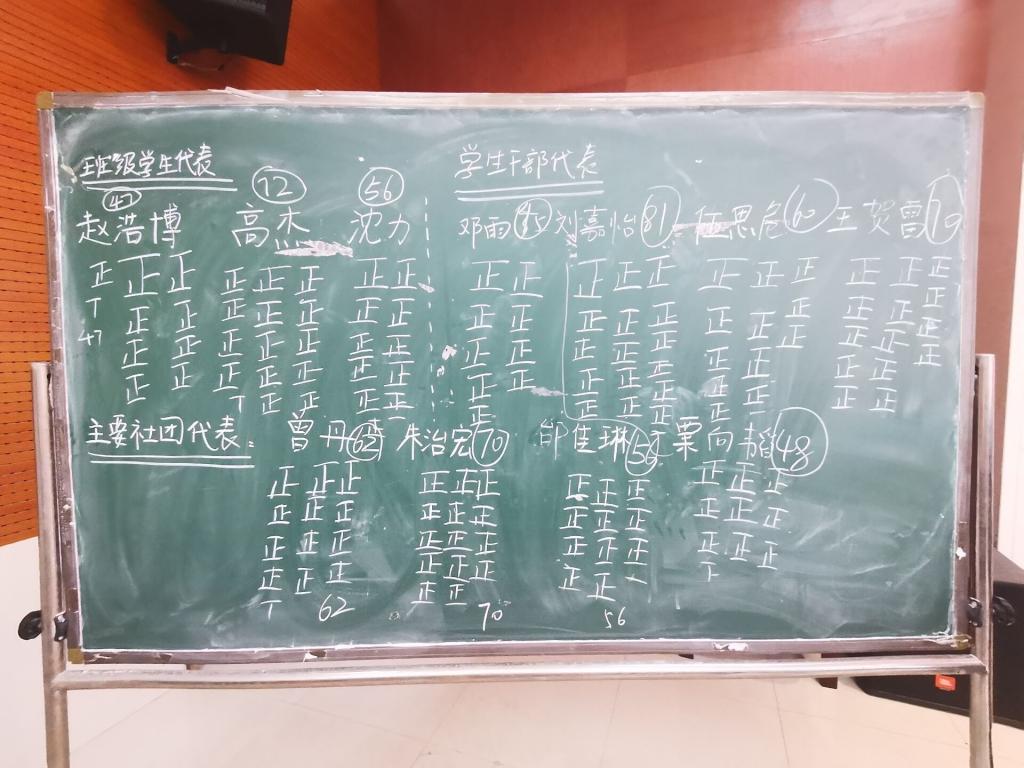 会议伊始,刘嘉怡讲解了此次学生代表大会的意义、选举流程,并公布了候选人名单。为确保公平公正,此次选举采取公开选举投票,现场唱票、计票的方式。会议的最后,由刘嘉怡公布学生代表名单,选举出的班级学生代表为高杰和沈力,学生干部代表为刘嘉怡和伍思危,主要社团代表为曾丹、朱治宏和邰佳琳,港澳台代表为白若昀,少数民族代表为唐煌轩和刘韵琳,常务代表为王贺雷。