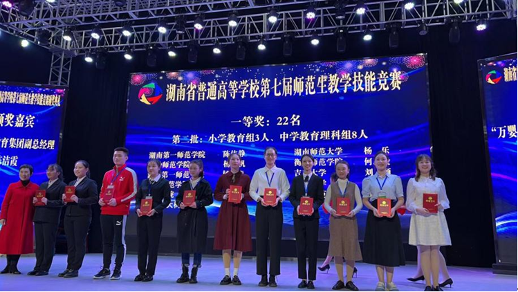 2021年10月22日至10月23日,由湖南省教育厅主办、衡阳师范学院承办的“湖南省普通高等学校第七届师范生教学技能竞赛”在衡阳师范学院举行。来自湖南省各所高校的师范生共149名参加了本次比赛。其中理科组共计54人参赛,经过激烈角逐,我院参加理科组竞赛的选手2018级周心怡同学斩获佳绩,荣获一等奖,指导教师为我院耿淑玲老师、景一丹老师、杨季冬老师。
