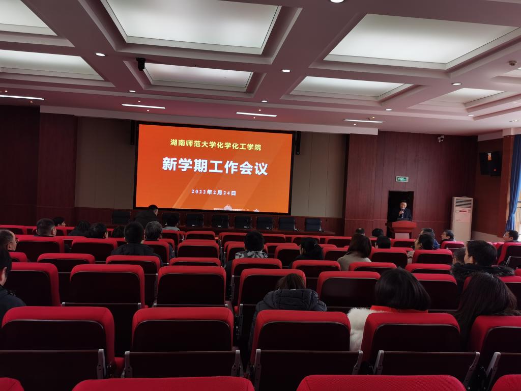 2022年2月24日下午,我院在化学楼报告厅召开了新学期工作会议。全体院领导出席此次会议,会议由党委书记谭东波主持。