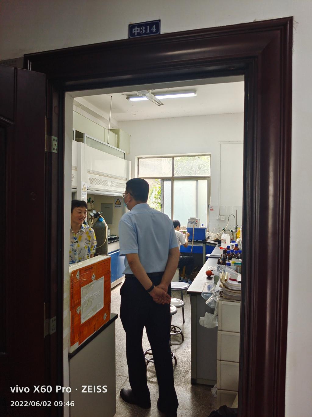 6月2日上午,伟德国际1949进行端午节节前实验室安全大检查,检查组由党委书记谭东波、副院长宋建新分别带队,副院长宋春红、实验中心常务副主任胡瑞祥、刘美艳等一行随同检查。