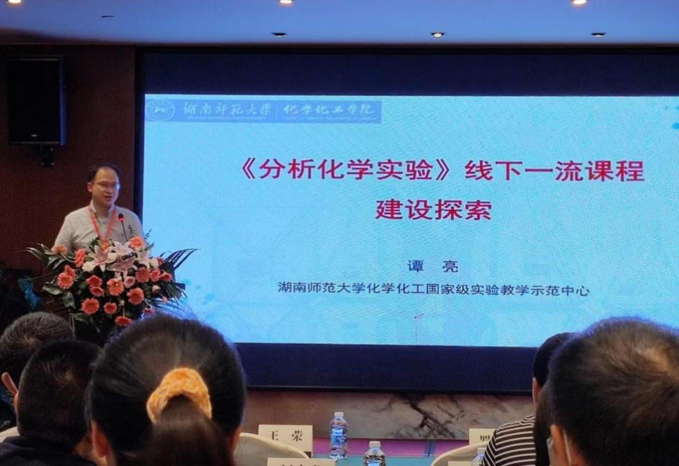 比赛同时,召开了化学实验教学与实验室建设研讨会,谭亮教授受邀作了题为“《分析化学实验》线下一流课程建设探索”的报告,分享分析化学实验课程建设和教学改革的经验,引起了与会代表和老师的强烈共鸣。