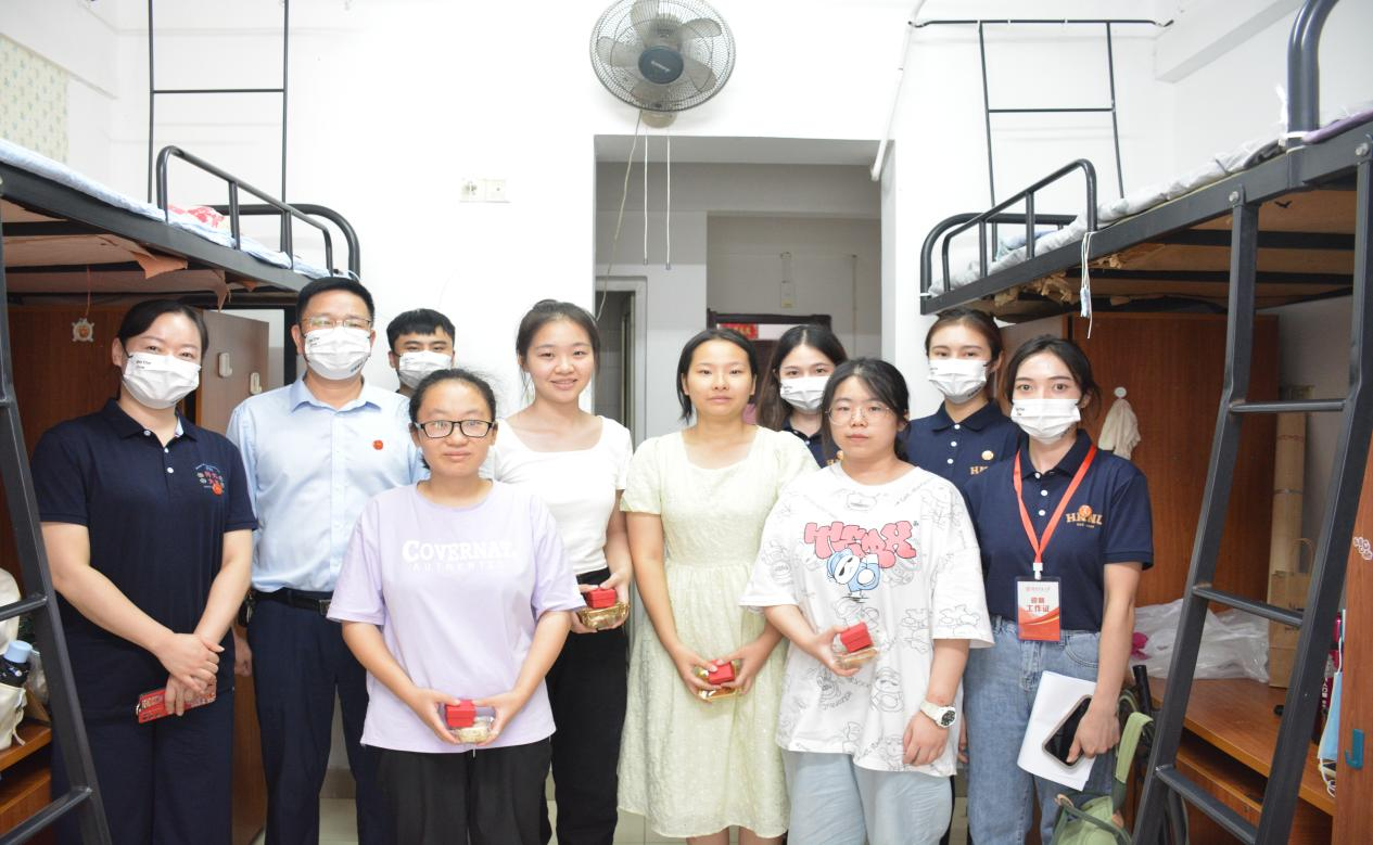 谭东波书记、段婷副书记一行与同学们亲切交谈,了解同学们的住宿、生活、学习规划等各方面情况,并送上了月饼和院徽。热情的话语,亲切的问候,暖心的礼物,让他们感觉到了家的温暖,感受了学院领导及老师对他们的关怀。