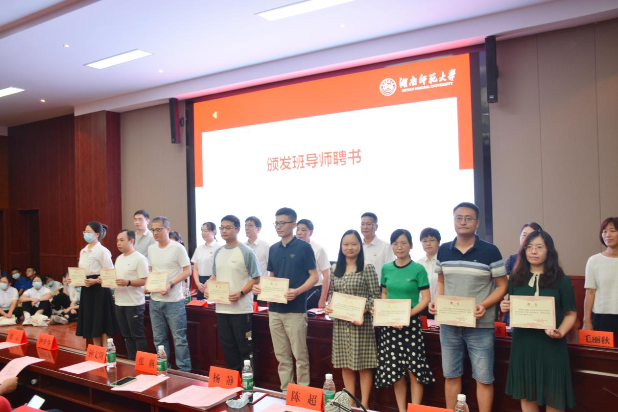 随后,学院党委副书记段婷宣读班导师聘任决定。学院领导为新生班导师颁发聘书并合影留念。