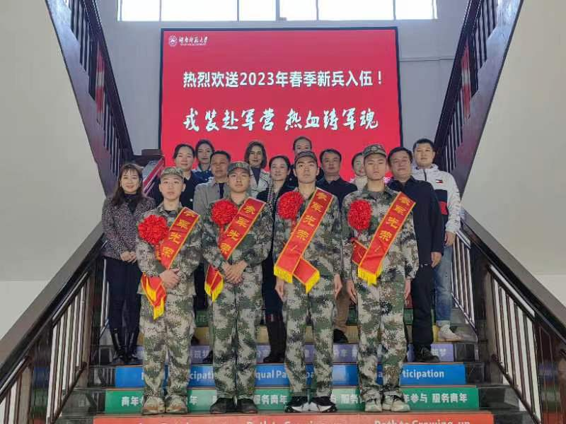 我院2022级化工与制药专业刘涵同学积极响应国家号召,在春季征兵活动中主动报名参军入伍。欢送仪式上,领导老师们为即将入伍的同学佩戴大红花和印有“参军光荣”的红色绶带,并赠予纪念品。段婷副书记代表学院对即将参军报国的刘涵表示祝贺和慰问,希望他能遵守纪律、认真服役、加强学习,争做“有灵魂,有血性,有本事,有品德”的“四有”军人,预祝他获取佳绩,成为学院和家人心中的骄傲。