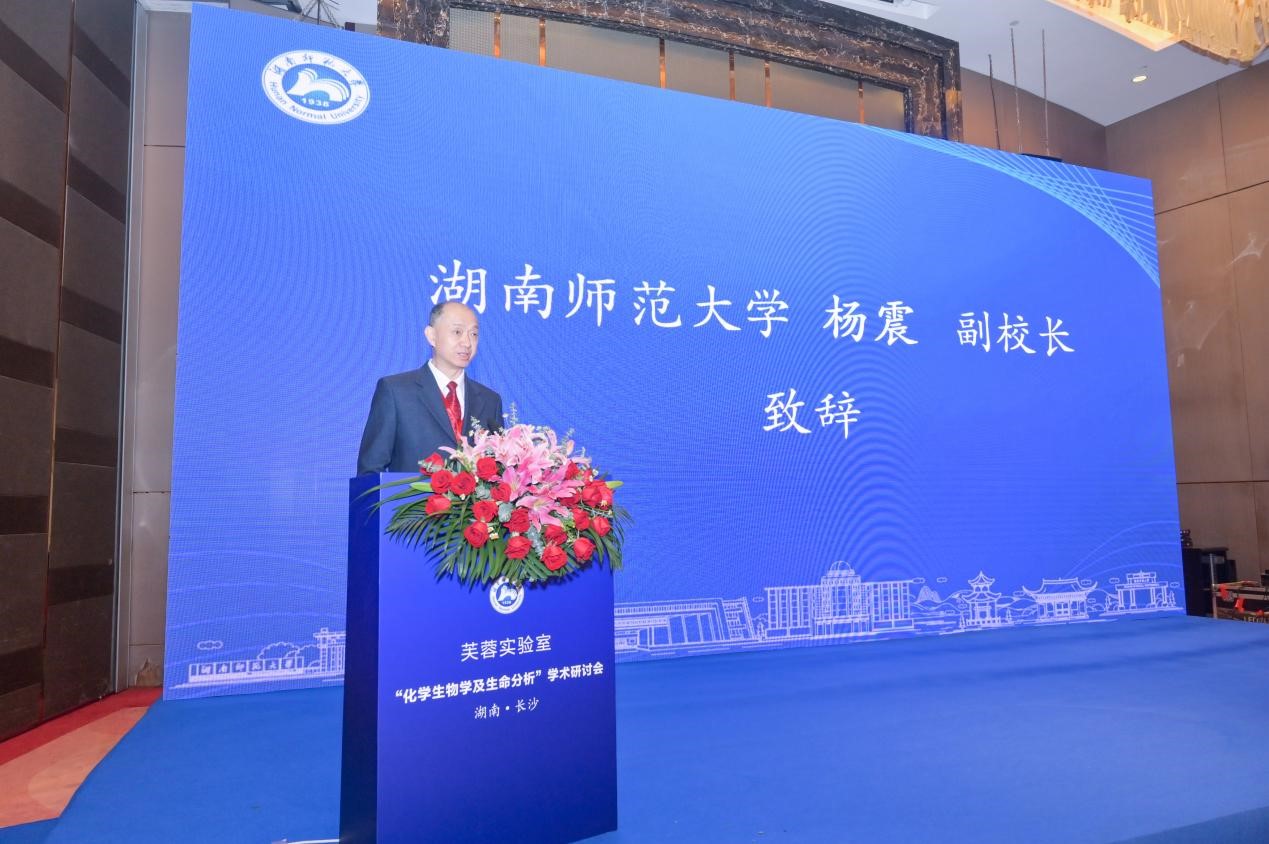 (通讯员 唐健清)4月1日上午,由芙蓉实验室、我校化学生物学及中药分析教育部重点实验室、交叉伟德国际院和伟德国际1949共同主办的“化学生物学及生命分析”学术研讨会在长沙开幕。中国科学院院士谭蔚泓、刘买利、李景虹、樊春海,湖南省科学技术协会副主席陈松、创新部一级调研员张伏祥,长沙市科学技术协会学会部部长宋和平,中南大学湘雅医学院副院长、科研部副部长黄志军教授,我校副校长杨震出席开幕式。会议由我校伟德国际1949院长杨荣华教授主持。