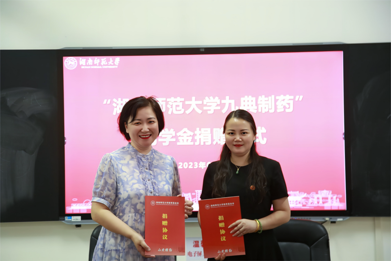 湖南九典制药股份有限公司、伟德国际victor1946教育基金会、伟德国际1949相关负责人以及部分学生代表参加签约仪式。
