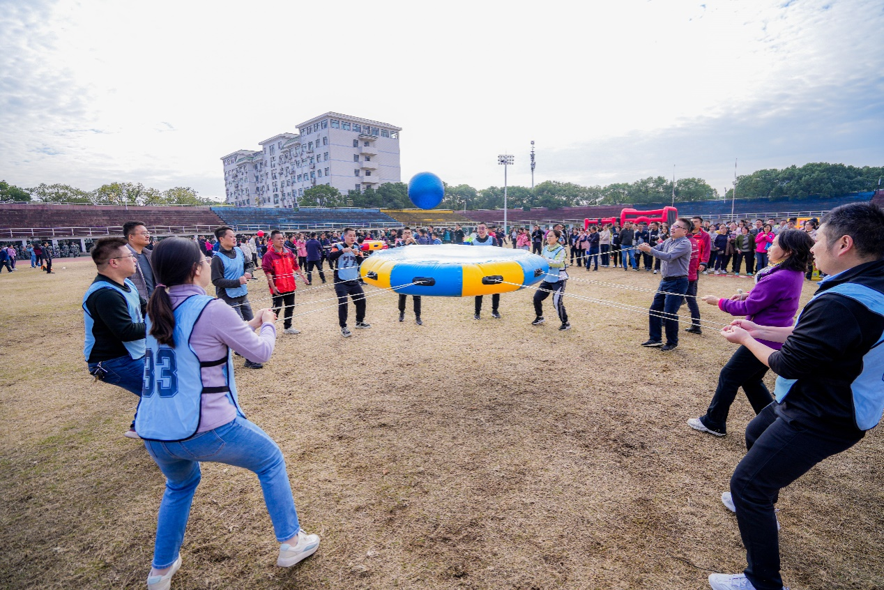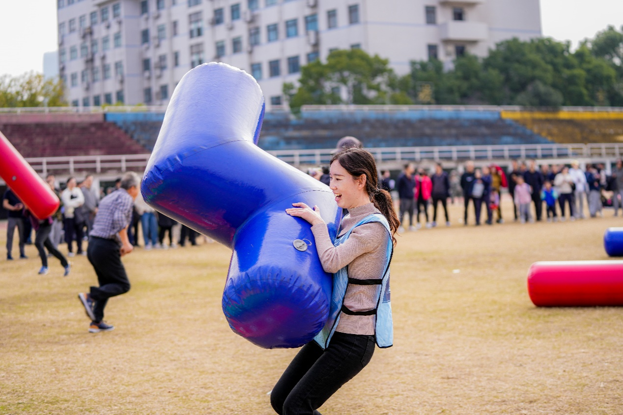 本次趣味运动会分为“携手并进、万众一心、快乐一起拼和趣味飞盘”四个团体项目。初冬暖阳,几缕白云,湛湛蓝如洗。场上运动员全身心投入,你追我赶,竞争激烈,场边教职工们相谈甚欢,加油声此起彼伏,气氛热烈。