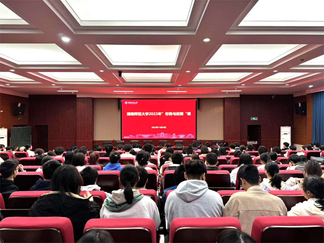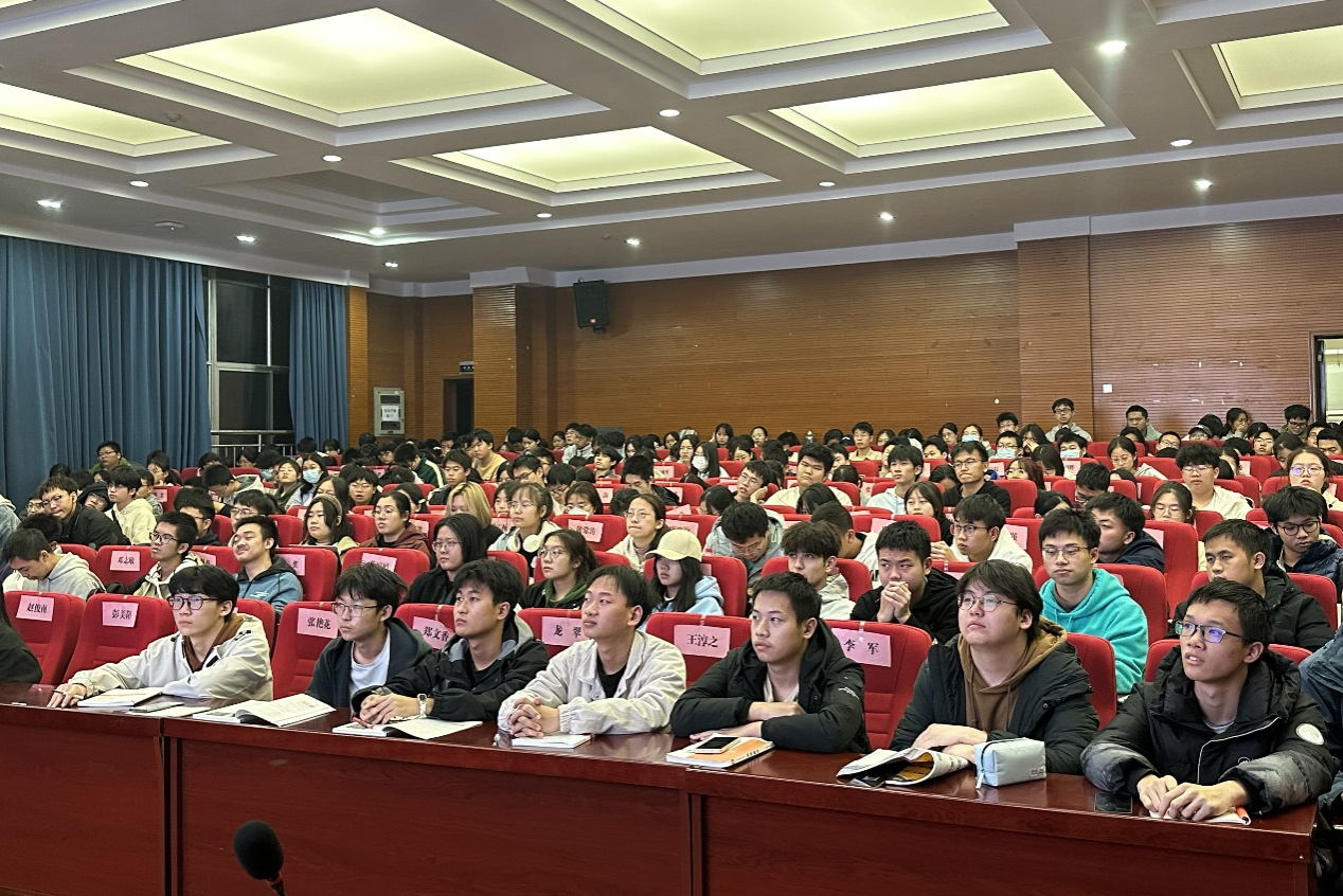 谭东波以“你心目中的2023年世界图景是怎样的”为切入点,简要介绍了2023年世界局部地区战乱的局势。他结合具体实例和数据,带领大家深刻认识了三个“之变”的含义及现实意义和深远影响,指出了当代大学生应对的具体做法。他勉励同学们,要进一步涵养家国情怀、强化使命担当,自觉将个人成长成才融入到党和国家事业发展的大局大势中去,努力学习,提升能力本领,为实现中华民族伟大复兴贡献力量。