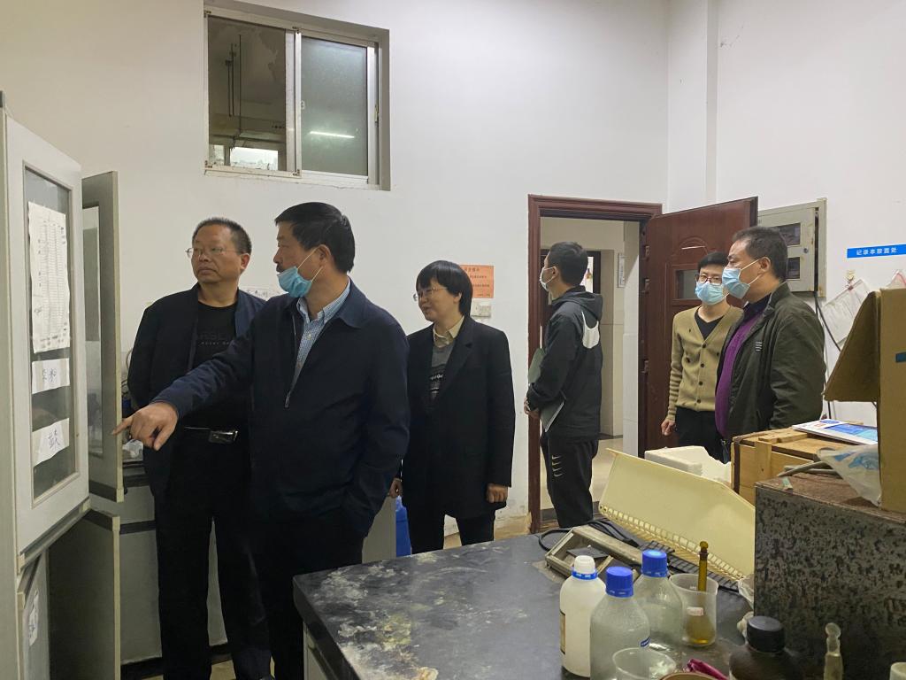 2021年10月26日上午,校资产与实验室管理处副处长蒋能胜、实验室管理科科长罗万才、保卫处安全科科长彭健联合带队到我院开展实验室安全检查工作。我院党委书记谭东波、副院长宋春红陪同检查。