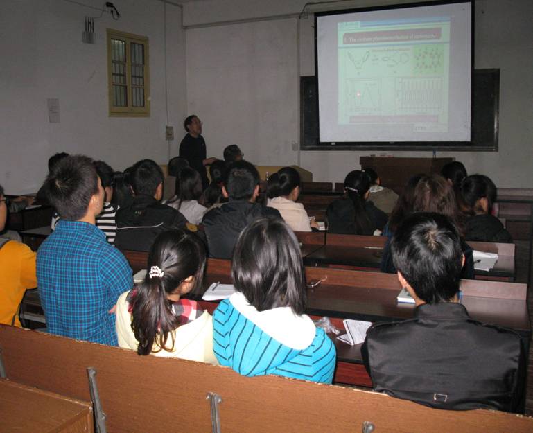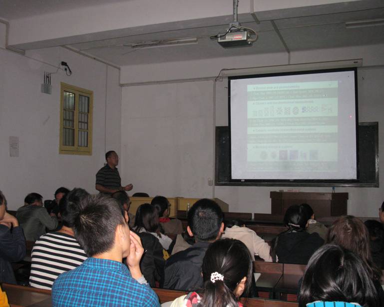 2012年10月23日,北京师范大学化学学院院长方维海教授和厦门大学固体表面物理化学国家重点实验室副主任曹泽星教授分别做了“Photo-induced isomerization of ethylene-bridged azobenzene explored by ab initio based nonadiabatic dynamics simulation”和“量子-经典力学组合方法与生物体系的计算模型”的学术报告。方教授主要详细地讲解了偶氮苯光学异构的整个思路及研究过程,通过模拟的100条轨迹来分析结构能量随时间的变化。还概括了气相反应的过程;分析了溶剂对偶氮苯的影响。曹教授主要介绍了分子激光态与光化学、过渡金属体系与金属酶体系。我院物理化学和材料化学的研究生踊跃提问,两位教授一一详细作了讲解。化学生物学及中药分析教育部重点实验室主任谢青季教授、伟德国际1949副院长肖小明教授、马铭教授等参加了学术报告并与两位教授就科研和管理等方面进行了广泛交流。