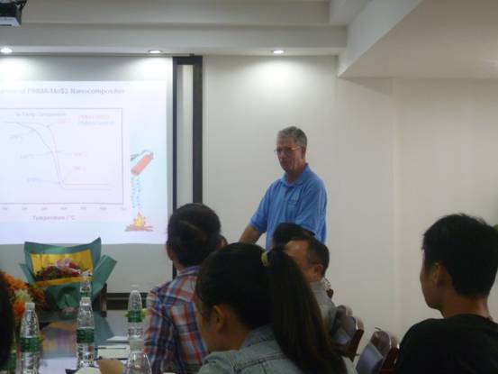Charles A. Wilkie教授为化工院师生详细介绍了其课题组的研究工作,并就聚合物降解﹑稳定性﹑阻燃等方面与我院师生进行了交流,让大家分享了一场精彩的学术盛宴。报告会结束后,化工院的师生积极和Charles A. Wilkie教授展开学术讨论,Charles A. Wilkie教授对大家的提问都一一地作了详尽回答。报告会气氛异常活跃。