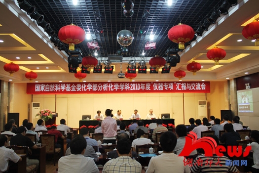 8月28日,我校承办的国家自然科学基金委化学部分析化学学科2010年度“仪器专项”汇报与交流会在红楼五楼会议室开幕。校长刘湘溶教授、国家自然科学基金委化学部常务副主任梁文平研究员出席仪式并讲话。