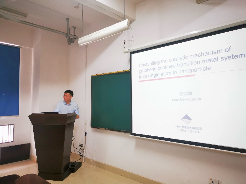 2021年5月14日上午10点,中科合成油技术有限公司任鹏举博士在化工院216会议室为我院师生带来了一场题为“Unravelling the catalytic mechanism of graphene confined transition metal system by DFT calculations: from single atom to nanoparticle”的学术报告,同行的还有该公司理论催化平台团队何育荣博士。报告由邱忠贤副教授主持,伟德国际1949部分老师、研究生聆听了此次报告。