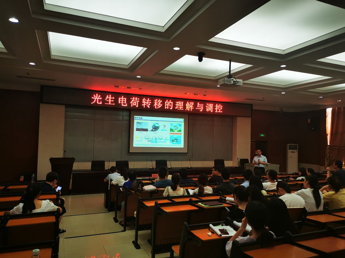 卢小泉教授从提出科学问题“理论电流与实际电流之间的差值”为切入点,系统的阐述了自然界中的电荷转移、光电化学水分解中的电荷转移及光生电荷转移的调控方法三方面内容。同时,详细地介绍了扫描光谱电化学显微镜(SPECM)的工作模式(正负反馈模式),数据分析和研究结论。报告结束后,师生们踊跃提问,卢老师耐心的一一解答,与在场师生进行了深度交流。