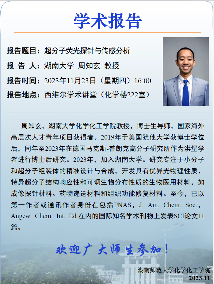 上一条:【学术报告】高性能荧光探针的设计及其生物成像研究