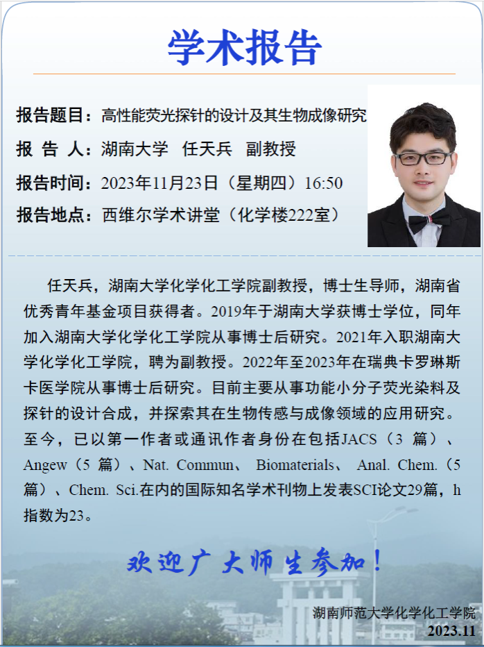 下一条:【学术报告】超分子荧光探针与传感分析