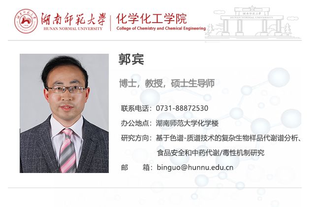 主要从事基于色谱-质谱技术的复杂生物样品代谢谱分析、食品安全和中药代谢/毒性机制研究。在相关领域重要学术刊物以第一或通讯作者发表高质量论文30余篇(总被引用次数1000以上、h-index 20、RG score 36.59),参与出版专著3部、获国家发明专利5项。主持完成国家自然科学基金项目2项,参与完成一类新药临床前药代及毒代动力学研究1项、广州市科技攻关重大项目1项、国家自然科学基金3项、863计划课题3项。曾获伟德国际victor1946“杨树达奖”学术作品类一等奖、中科院上海分院第三届研究生学术讨论会论文二等奖、湖南省优秀硕士论文奖、湖南省科技进步二等奖、中国中西医结合学会科学技术三等奖等。现为美国生物化学与分子生物学学会ASBMB、中国药理学会、中国化学会和中国毒理学会会员;担任国际期刊Current Drug Metabolism编委、中国药理学会药物代谢专业委员会委委员、湖南省预防医学会食品安全专业委员会常务委员、植化单体开发与利用湖南省重点实验室学术委员会委员等职。为Anal Chem、 Biosens Bioelectron、J Chromatogr A等7家国际期刊审稿人,获Elsevier杰出审稿人奖(Outstanding Reviewer Award 2015、2018)。