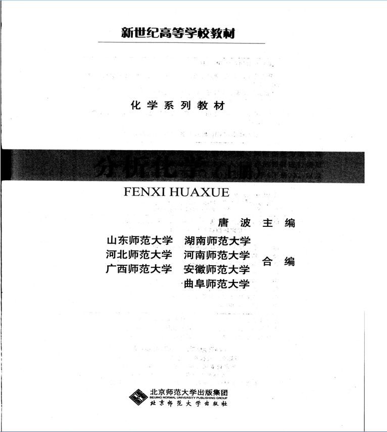 (5) 张友玉、唐浩《分析化学(下)》(副主编),北京师范大学出版社,2015.